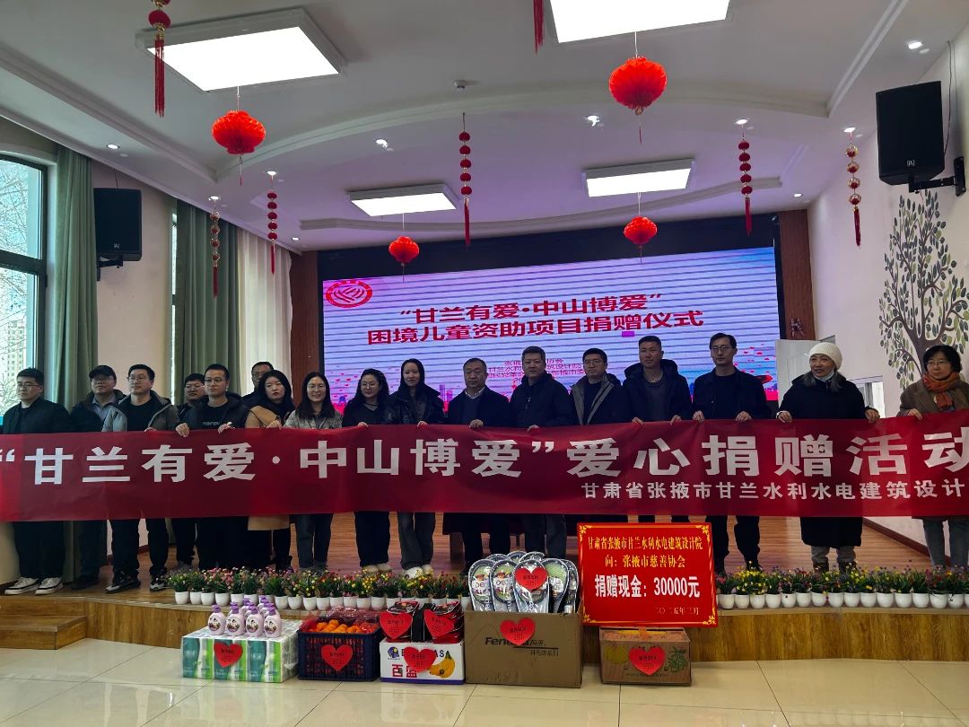 為大力弘揚扶貧濟困的慈善理念,發(fā)揮國有企業(yè)、民主黨派在凝聚愛心服務(wù)力量、組織實施慈善服務(wù)項目、參與新時代文明實踐方面的作用。3月28日下午,由張掖市甘蘭水利水電建筑設(shè)計院、民革張掖市委會與張掖市慈善協(xié)會共同發(fā)起的"甘蘭有愛·中山博愛"困境兒童資助項目捐贈儀式,在市兒童福利院舉行?;顒蝇F(xiàn)場,甘蘭水利水電建筑設(shè)計院與民革張掖市委員會向張掖市慈善協(xié)會捐贈現(xiàn)金30000元。