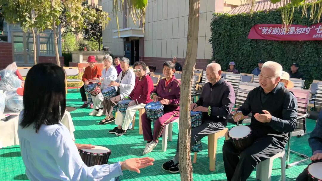活動現(xiàn)場,伴隨著溫馨的音樂,非洲鼓表演拉開了活動序幕,輕快的節(jié)奏瞬間點(diǎn)燃了現(xiàn)場氣氛,將活動推向高潮。協(xié)會志愿者為老人們送去了紅棗枸杞汁、酸奶、面包等慈善慰問品。